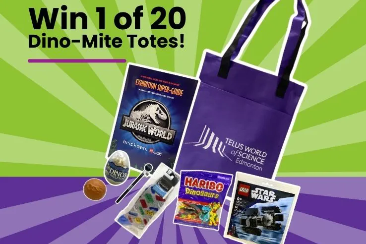 While you're visiting the Science Centre, don't forget to enter to win a Dino-Mite Tote featuring a Jurassic World by Brickman® Guidebook signed by Ryan ‘Brickman’ McNaught... and much more! See contest rules for more information.